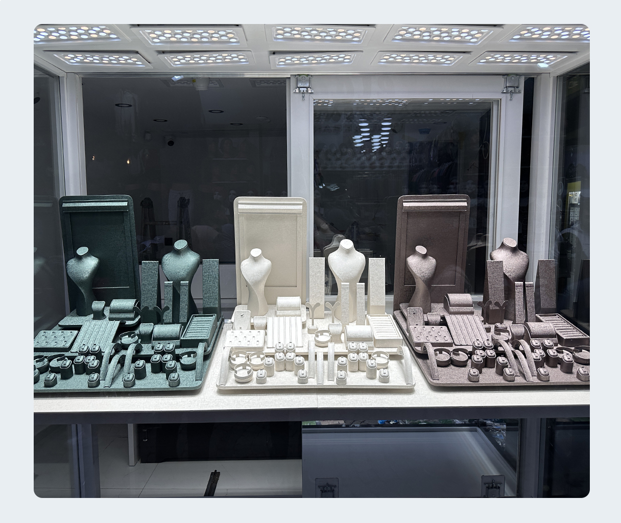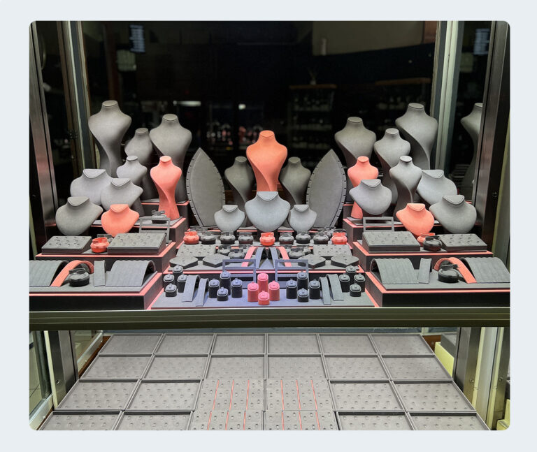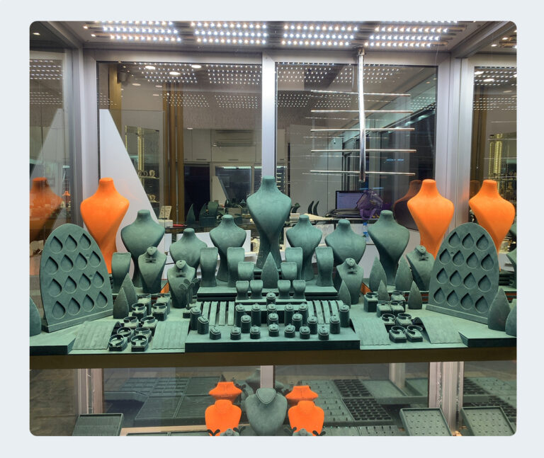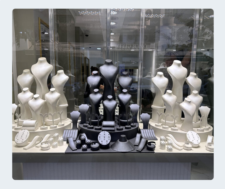 Tasarımın ve el işçiliğinin zirvesi olan manken, büst, rulo ve çeşitli kuyumcu aksesuarlarımızla yüksek zanaat ürünü olan mücevherlerin en doğru ve iyi şekilde müşteriye sunumlarını sağlıyoruz.